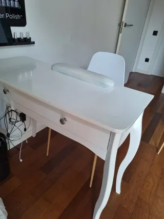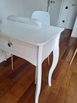 Mesa manicura consola con cajón almacenamiento, 96x40 cm aproximadamente, ideal para cualquier espacio. - Medidas: 96 cm de ancho x 40 cm de profundidad. - Diseño elegante con patas curvas. Almacenamiento
