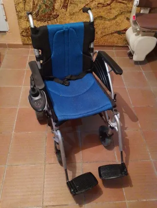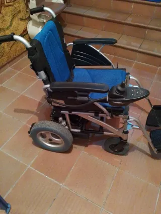 Silla de ruedas eléctrica con asiento y respaldo en tela. La bateria funciona, però no sé quan aguanta.