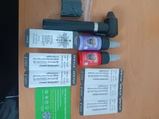 -Maquina Xnet -2 cabezales de diferente tamaño -2 baterias -1 conector a corriente para sustituir las baterias - impresora termo, con folios “ la maquina solo se a usado para hacer los dibujos que se ve en la piel sintética usada nada mas. Están todos los complementos para empezar a tatuar como por ejemplo el tranfer, tinta negra, jabón, cubos, espátulas, bolsas para la maquina, esparadrapo , agujas ect.... se puede vender con o sin impresora - con impresora - 250€ - sin impresora - 200