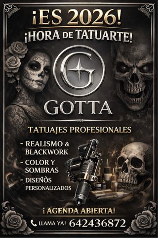 Buen día Ofrezco mis servicios como tatuador, materiales de primera calidad, si tienes cualquier idea contáctame y te doy presupuesto sin ningún compromiso, diseños originales y personalizados, agenda ya tu cita enviando mensaje por privado, aqui, al whatsapp o por instagram!! Whatsapp: 692599493 Instagram: @kruvidetattoo Consulta tu idea sin compromisos ✨ Mejor precio garantizado!