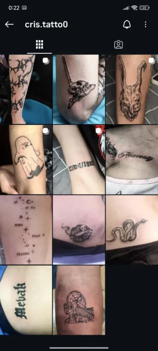 Tatuadora aprendiz a domicilio en Madrid 🖤 Precios desde 20€. Diseños ya hechos o personalizados. Buen trato, higiene y cuidado en cada tattoo. 📩 Escríbeme por Wallapop o DM para info y citas. IG: cris.tatto0