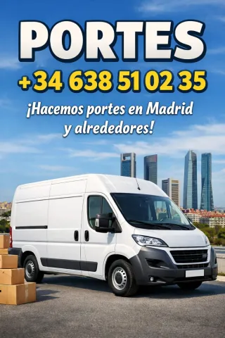 Servicio de portes y mudanzas con experiencia. Seriedad, puntualidad y buen trato garantizado. ✔ Mudanzas completas ✔ Portes pequeños ✔ Recogidas en tienda (Ikea, Leroy, etc.) ✔ Transporte seguro Precios ajustados y flexibles. Contáctame ahora y te doy presupuesto rápido. 📞 638 510 235