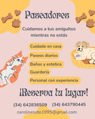 Si buscas un lugar donde tu mascota reciba cariño, atención y los cuidados de una persona que realmente disfruta de su compañía ¡escríbeme! Soy veterinaria y amante de los animales, y abro las puertas de mi casa para cuidar de tu peludo como si fuera uno más de la familia. Ofrezco un ambiente tranquilo y familiar, experiencia, entretenimiento y mucho amor para que no le falte nada! Ofrecemos: ✅ Paseos de perros ✅ Visitas a domicilio ✅ Guardería / alojamiento en casa ✅ Transporte a veterinario ✅ Servicios de higiene: baño, uñas, limpieza oídos 📍 Zona: Las Palmas + alrededores.