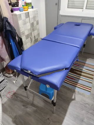 Camilla de Masajes. Es Plegable, Portátil y está como nueva. 🛏️ Características principales: - Color azul elegante y profesional - Estado: prácticamente nueva, sin apenas uso - Plegable tipo maletín, ideal para transportar y guardar fácilmente - Ligera pero robusta, perfecta para uso en casa o a domicilio - Medidas: 186 cm de largo x 60 cm de ancho - Soporta hasta 150 kg de peso - Incluye sistema de sujeción firme y estable