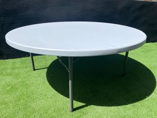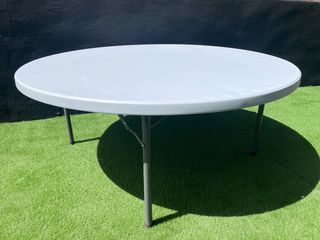 Mesa redonda de 1,8 metros de diametro DATOS TÉCNICOS: MEDIDAS (ancho x largo x alto y peso) 180x180x74cm 34,4kg. MATERIAL: Acero, Polietileno. Para 8-10 personas. RESISTENTE: protección solar rayos UV, resistente a la intemperie, fácil transporte. ESTILO FUNCIONAL Y VERSÁTIL: de líneas simples pero robusto y resistente, es un modelo sobrio, funcional y versátil. CARACTERÍSTICAS: diseño, ligero, multiusos, plegable.