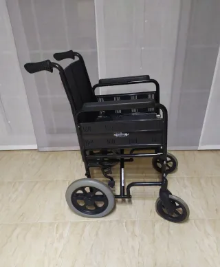 Nueva a estrenar. Usada 2 días. Especificaciones: ✓Silla de transporte ligera y compacta, de estructura de aluminio. ✓Equipada con respaldo y asiento acolchados. ✓ Reposapiés extraíbles y regulables. ✓ consta de 4 ruedas auto direccionables resistentes a pinchazos. ✓ mangos ergonómicos con frenos de fácil acceso ✓Se plega tirando de las dos asas a cada lado del asiento. ✓ Peso máximo: 100 kg ✓ Color: Negro y Gris Claro Se puede recoger en Badalona Barcelona.