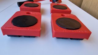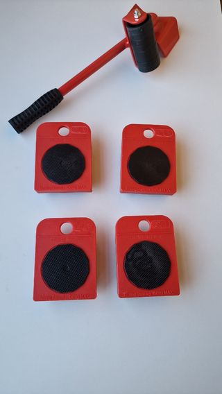Transportador de muebles con ruedas, juego de 5 piezas. Aguanta hasta 150 kg . Es un elevador de muebles para facilitar el desplazamiento o levantamiento de puertas. Ruedas orientables para mover mejor los muebles pesados.
