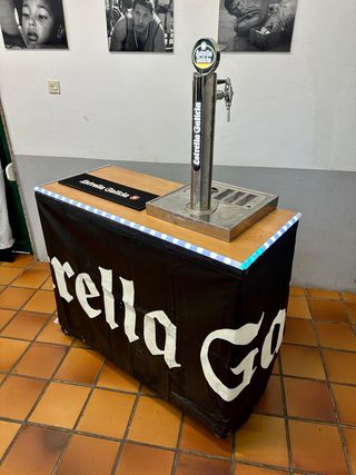 Se vende grifo profesional de cerveza Estrella Galicia con iluminación LED. Mueble con ruedas hecho a medida en acero y encimera de madera muy resistente. NO NEGOCIABLE. Perfecto para eventos de bastantes asistentes: cumpleaños, bodas, fiestas privadas, bares, restaurantes, etc Posible transporte zona Galicia ———- Tirador enfriador grifos cervexa cerveceros 1906 hijos rivera pinchador dispensador carbonico bombona