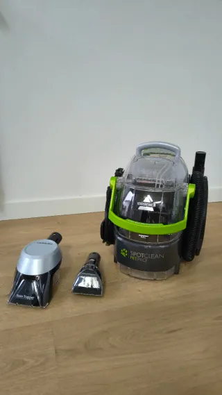 Alquilo aspiradora quitamanchas Bissell Spotclean Pro. Equipo diseñado especialmente para hogares con mascotas. Tiene una potencia de 750 W y 2 depósitos independientes para agua limpia y sucia. Ideal para eliminar manchas de alfombras, tapicerias, sofás, colchones, etc, con un resultado increíble. Se entrega con todos sus accesorios y manual de instrucciones. El precio incluye la aspiradora y el producto de limpieza especial para 2 depósitos completos. Alquiler: 1 día: 30€ 2 días: 50€ 3 días: 70€ Para la entrega de la aspiradora se requiere una fianza de 150€ que se devolverá tras la entrega y comprobación del equipo.