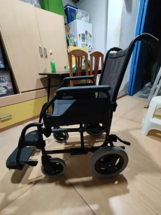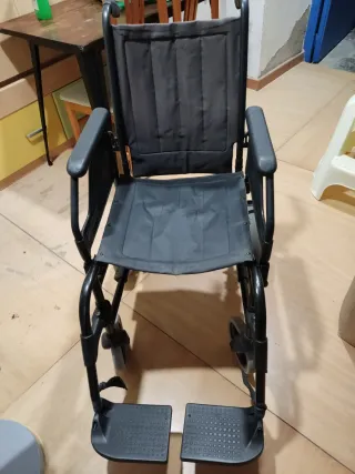 Silla de ruedas plegable negra, en buen estado.
