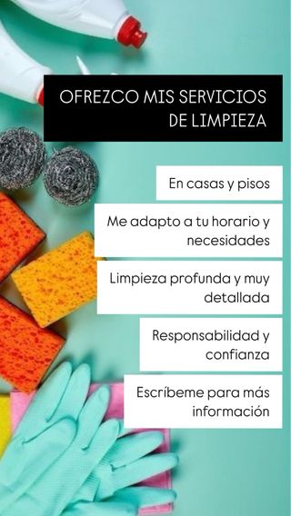 Tu lugar limpio sin complicaciones !! 🧽🧹 Ofrezco limpieza de pisos, casas y oficinas, ajustandome a lo que necesites. Si necesitas algo adicional o especial, podemos charlarlo sin problema 😉. Pregunta por tarifas y ofertas para clientes frecuentes. Dime dónde estás y vemos como puedo llegar hasta ti. 📲 669 ▶️ 14 ▶️86▶️ 07 🔝