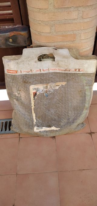Solo sr ha usado una vez, se ve un poco manchada pero ha tenido que ser de estar guardada. Va en su funda, se plega y se abre muy fácil y es muy fácil y cómoda de transportar.