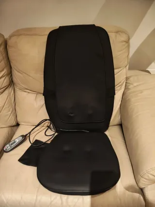 Para masajear cervicales, dorsales, lumbares y gluteos. Se puede conectar en casa o en el coche. Solo se ha usado una vez, porque tengo 2.