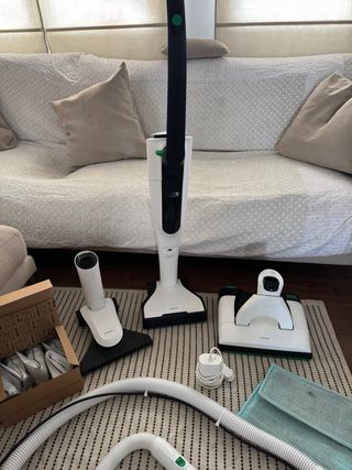 sistema de limpieza integral Kobold VK7 es más que un aspirador, se compone de diferentes módulos que funciona con batería y con diferentes accesorios fabricados por Vorwerk. El sistema de limpieza integral Kobold VK7 está equipado con: VK7: Aspirador sin cable EB7: Módulo Multisuelos & Alfombras EB7 SP7: Módulo Aspira & Friega SP7 HD7: Accesorio de esquinas HD7 PB7: Módulo textiles & Colchones: Cepillo de textiles PB7 MP7 y MR7: Módulo textiles & Colchones: Aspira y Lava colchones SB7: Tubo flexible no eléctrico SB7 Pack de Accesorios: FD7 Plumero, conjunto de cepillos (incluye el accesorio de taladro BA7 y el cepillo