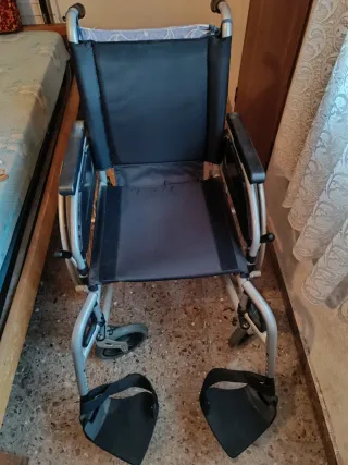 Silla de ruedas en buen estado, ideal para uso diario. - Plegable para facilitar el transporte y almacenamiento. - Estructura resistente y ligera. - Asiento cómodo y acolchado.