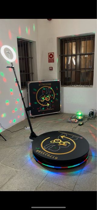 Espectacular fotomatón para todo tipo de fiestas y eventos como bodas, comuniones, cumpleaños... Con muchos atrezos divertidos y todo lo necesario para pasarlo genial. Es muy llamativo, ocupa un espacio que con sus luces adorna y da el toque particular para hacer una gran fiesta.
