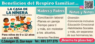 Centro de respiro familiar: La casa de la niñera. Tel.: 691 37 72 75 En calle zabalgain #15 zizur Mayor.