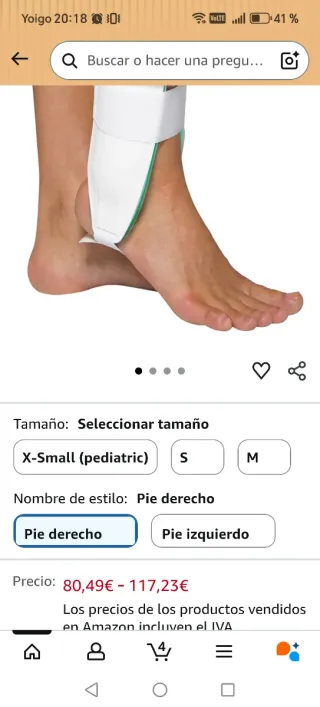 Tobillera ortopédica Aircast Air-Stirrup. Usada 2 semanas - Modelo Air-Stirrup. - Color blanco y verde - Pie derecho