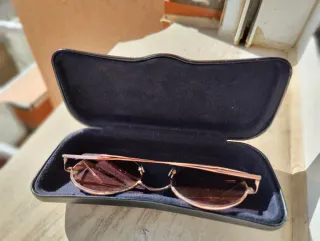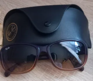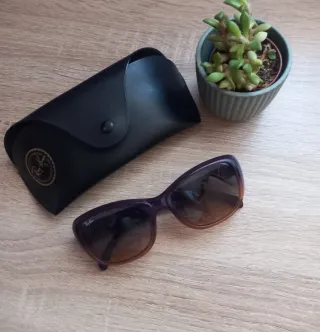 Gafas de sol Ray-Ban con un diseño moderno y elegante. - Montura en tonos morados y marrones degradados. - Incluye funda protectora.