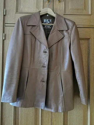 Elegante chaqueta de piel en tono beige. Un clásico atemporal para cualquier guardarropa. - Material: Piel genuina. - Diseño entallado. - Cierre de botones. - Bolsillos frontales.