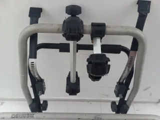 Portabicicletas de la marca MENABO, diseñado para transportar bicicletas de forma segura. - Fabricado en aluminio y acero. - Diseño plegable para facilitar su almacenamiento. - Compatible con la mayoría de los vehículos.