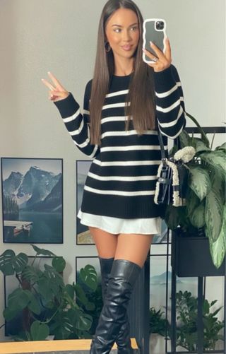 Jersey de rayas clásico en blanco y negro. - Diseño de rayas horizontales. - Manga larga.