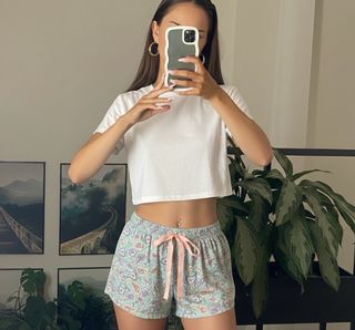 Pantalones cortos de pijama con un bonito estampado paisley. - Cintura elástica con cordón. - Diseño colorido y alegre.