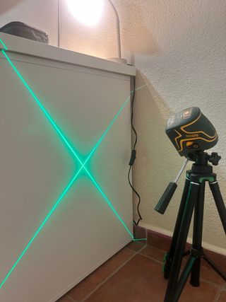 Nivel láser de cruz verde TECCPO, ideal para trabajos de medición y alineación. Incluye trípode. - Láser de cruz verde. - Incluye trípode. - Modelo TECCPO.