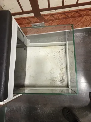 Mueble blanco con pecera 250L, , tiene un cojín negro cómodo, tiene los filtros, el motor funciona y los tubos, tiene luces led, pegados pero no funcionan Necesita limpieza a fondo. Está muy usado, ya que lo utilizaba para clientes del centro, te sentabas y metías los pies en la pecera para que los peces garra rufa te comieran las pieles muertas Me quiero deshacer de él, me ocupa espacio y ya no quiero usarla más, no quiero más peces, jejjej Hay que venir a por él, pesa mucho, no se puede desmontar, va todo junto el mueble con la pecera.