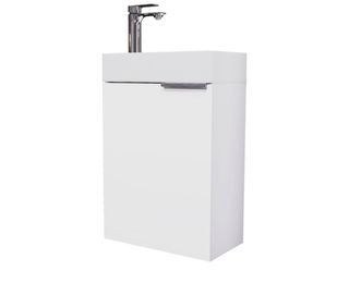 Mueble de baño compacto y moderno, ideal para espacios reducidos. Su diseño minimalista aporta un toque de elegancia. - Acabado liso y brillante. - Tirador integrado para un acceso fácil. Completamente nuevo, lo vendo por equivocarme con las medidas