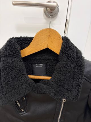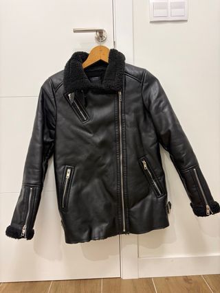 Abrigo estilo motero con forro de borreguito. - Exterior efecto piel. - Cuello con pelo sintético. - Cierre de cremallera.
