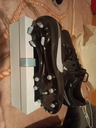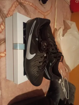 Zapatillas de fútbol Nike en color negro con detalles plateados. - Diseño deportivo. - Cierre con cordones.