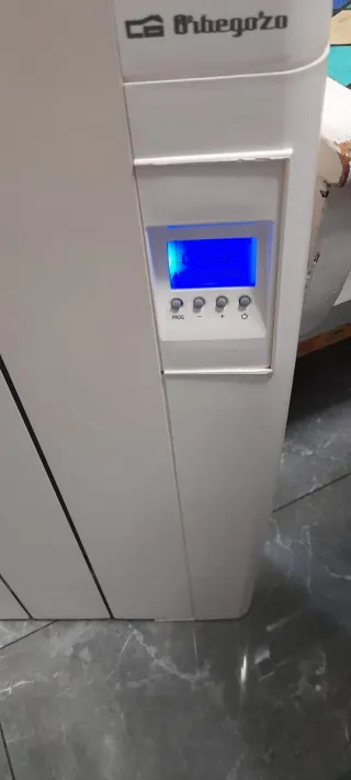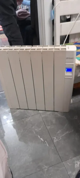 Radiador eléctrico de color blanco. Cuenta con un panel digital. - Diseño moderno con varias aletas. - Panel de control digital.
