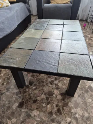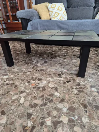 Mesa hierro y baldosas de piedra. Ideal para salón o exterior.