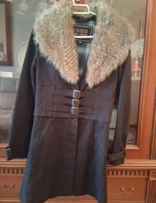 Abrigo Guess Negro Talla XS con Cuello Peludo