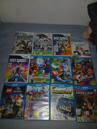 Lote de 12 videojuegos para Wii U. - Just Dance 3 - Just Dance 4 - Tournament Legends - PES 2012 - Mario Kart 8 - Splatoon - Lego Jurassic World - Super Smash Bros. Wii U - Nintendo Land - Minecraft: Wii U Edition - Mario & Sonic en los Juegos Olímpicos Río 2016 - Wii Sports separados 10€ juntos pak especial 40€ precio no megociable solo los dela wiiU los dela wii lla estan vendidos