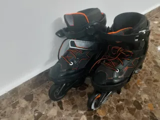 Se venden patines en línea Oxelo, ideales para iniciarse en el patinaje. - Talla 35-38 - Color negro con detalles en naranja. - Cierre con cordones, velcro y hebilla. - Ruedas de 80mm y rodamientos ABEC 3. Patinete de la marca Oxelo, ideal para niños y adolescentes. Es un modelo MID 5 Color: Negro con detalles en verde lima/amarillo. Plegable: Sí, fácil de guardar y transportar. Manillar: Ajustable en altura para adaptarse al crecimiento del usuario. Ruedas: De goma (PU), con un buen rodaje. Freno: Freno de pie trasero. Estado: Usado, pero en buen estado general y listo para usar.