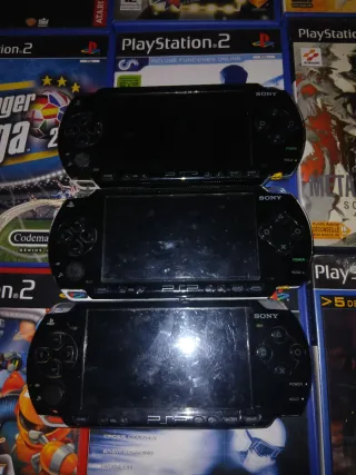 Consola portátil Sony PSP en color negro. Ideal para llevar tus juegos a todas partes. - Diseño ergonómico. - Pantalla nítida. - Botones de control intuitivos. Vemdo 3 psp 30€ precio no negociavle una funciona super vien i las dos que ai nose que lespasa i tamvien doi piezas de mas modelos i pantalla dela psp tret