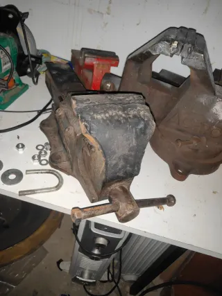 Tornillo de banco robusto, ideal para trabajos de taller. - Fabricado en metal resistente. - Marca ACERO visible en la base. Muy robusto y grande , pesa unos 25 kilos , a recoger en silla .