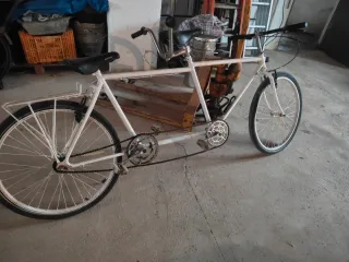Bicicleta tándem de color blanco, diseñada para dos personas. - Cuadro de bicicleta tándem. - Ruedas de bicicleta. - Sillín de bicicleta. - Manillar de bicicleta. Ruedas casi nuevas , .