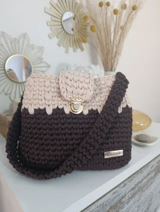 Bolso de mano tejido con un diseño bicolor,con forro. - Cierre metálico dorado. - Asa bandolera. - Detalle handmade metálico.