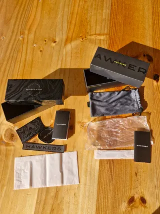 Dos cajas de gafas de sol Hawkers. Incluye lo que se ve en las fotos.