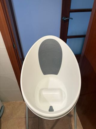 Bañera para bebé de la marca Schnuggle, diseñada para facilitar el baño del recién nacido. Incluye un soporte para elevar la bañera. - Diseño ergonómico. - Soporte plegable para fácil almacenamiento.