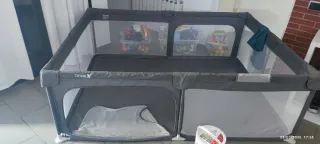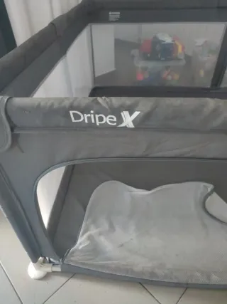 Parque infantil de la marca Dripe X, ideal para que los más pequeños jueguen de forma segura. Es plegable y fácil de transportar. - Estructura de metal y tela. - Laterales de malla transpirable. - Incluye una colchoneta. - Puerta de acceso con cremallera.