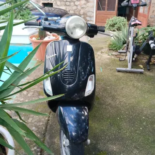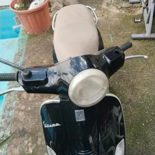 Scooter Vespa en muy buen estado, con un diseño elegante y funcional. - Color principal negro con detalles en beige. - Estilo scooter clásico.