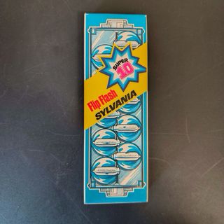 Caja de 10 unidades de Sylvania Super Flip Flash. - Empaque original. - Diseño llamativo con estrella y olas.