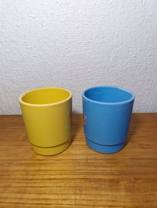 Pareja de tazas de diferentes personajes originales de la saga Super Mario, son de plástico y merchandising oficial Nintendo. Fabricadas en Japón. La taza amarilla tiene el diseño con la Princesa Peach y taza azul con Toad. Estéticamente como puede verse con marcas del paso del tiempo. Etiquetas: Hasbro, Mattel, Bandai, Takara, Tomy, Lego, Playmobil, McFarlane, Funko, Comics Spain, Pokemon, Star Wars, Transformers, Masters of the Universe, Power Rangers, G.I. Joe, Schleich, Majorette, Madelman, Airgam, Micronauts, Street Sharks, ThunderCats, Micro Machines, TMNT, Marvel, DC Comics, Jurassic Park, Kenner, Toy Biz, Famosa, Guisval.