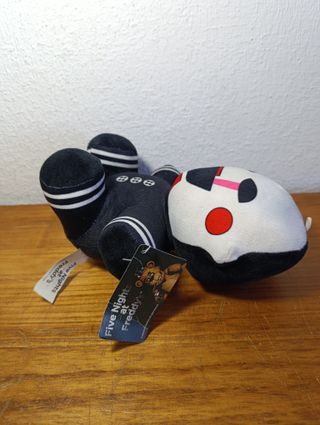 Peluche original de “The Puppet” (también conocido como Marionette), personaje de la saga Five Nights at Freddy’s. Diseño en blanco y negro con detalles bordados: cara blanca con mejillas rojas, cuerpo negro con rayas blancas y botones. Estéticamente como puede verse en bastante buen estado, además deque aún conserva la etiqueta original. Etiquetas: Hasbro, Mattel, Bandai, Takara, Tomy, Lego, Playmobil, McFarlane, Funko, Comics Spain, Pokemon, Star Wars, Transformers, Masters of the Universe, Power Rangers, G.I. Joe, Schleich, Majorette, Madelman, Airgam, Micronauts, Street Sharks, ThunderCats, Micro Machines, TMNT, Marvel, DC.
