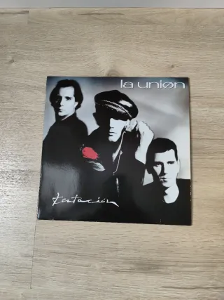 Disco de vinilo del álbum Tentación de La Unión. - Portada icónica con los miembros de la banda. - Incluye la canción Tentación.
