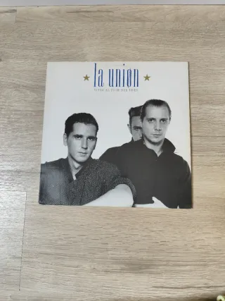Vinilo del álbum Vivir al Este del Edén de La Unión. - Formato LP. - Portada con fotografía del grupo.